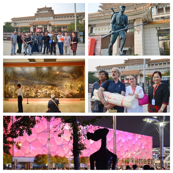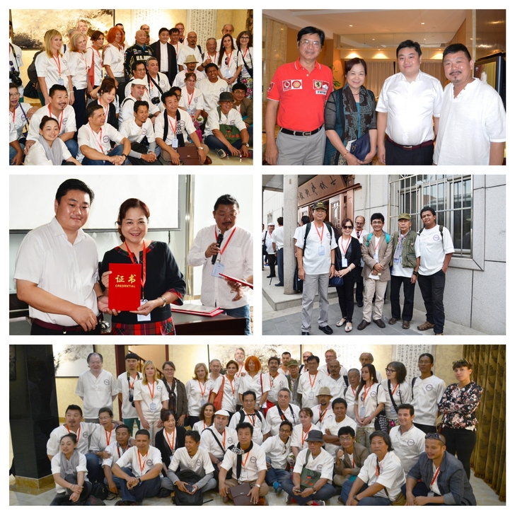 主辦方北京億朴文化有限公司董事長劉明松介紹,該展計畫未來將陸續在美國、俄羅斯、英國、法國、日本、澳大利亞、泰國、中國臺灣地區等地舉辦,希望通過畫展在國際舞臺上展示中國的形象和中華文化的博大精深,同時進行更廣泛和多領域的文化交流,積極探索拓展合作管道,共襄繁榮世界文化藝術之盛舉。話雖然說得豪氣干雲,接待的也很貼心,也有誠意,但我覺得究竟是私人老闆首次辦,雖然委託馬來西亞Mr. Simon Tan君協辦,他也動員全家很多人支援,世界各地人員也非常好人緣,服務夠熱心,尤其主持節目風趣流暢,眾多畫家均熟悉,因為都是Simon出面邀請的,這點當然與北京雙年展是與外交各國有關是不同的規格,能取得30個國家和地區的畫家作品已是難能可貴了,風風光光的共聚一堂生活幾天,交流參觀訪問很多地方,包括北京中華世紀壇會場、天壇、七九八藝術村、長城、王府井、劉明松董事長個人的士林藝術館、農莊藝術基地等,活動有聲有色。