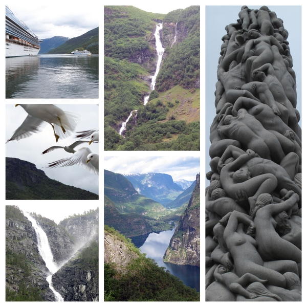 2016年6月17日帶北歐12天團,6月20日我們搭郵輪由丹麥到挪威奧斯陸,到挪威就是慕名峽灣而來,沒想到挪威山水景色宜人,海、湖、河有時分不清楚,一路數不清的瀑布,因為融雪自然流下,都不像尼加拉瀑布那樣雄壯威武,一絲絲的細流,卻是懸掛在山頭,飄落幾百公尺。道路蜿蜒,馬路平整狹窄,地大人稀、車子不擁擠,只有雙線道,穿山越嶺隧道數不清,有的隧道內竟然有圓環及叉路,遊覽車行駛其間,彷彿進入仙境。