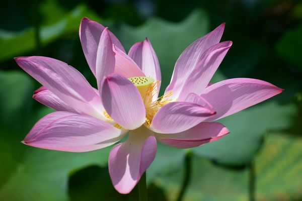 荷花也叫蓮花,可是我都習慣稱長出池塘的是荷花,平躺水上的是蓮花。「荷花」大而豔麗,花瓣通常以十二至十六片居多,花托呈倒圓錐型,雌蕊埋藏其中、雄蕊環生在花托之下。荷花性溫味苦甘,能活血化瘀、解暑、去熱毒,可用於治療摔傷,荷花可以用於治療風濕病和毒瘡疥癬,用時取荷花揉碎,貼於紅腫的地方就可以起到效果。據《本草綱目》說:取荷花與糯米煮粥,能使青春養顏。《太清草木方集要》寫道:蓮花、藕、蓮子陰乾,一起研成粉末,每天與溫酒一起服下去,能青春養顏 延長壽命的作用。