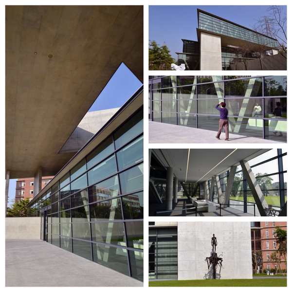 1051208星期四,利用年底最後年假機會請了三天假,早上往臺北轉運站搭09:10國光號車往台中,因為後面行程都以台中火車站為主,所以不搭高鐵,時間、花費都較經濟。約2小時就到新台中火車站前的國光客運新台中轉運站,提行李過街走到雙十路一段頭,博奇酒店小而美,服務小姐很客氣,不等下午1500就直接讓我們入住,放好行李,出來找家小店用過午餐,輕鬆走到雙十路一段中間的干城車站,搭上起站的彰化客運約行1小時,底站亞洲大學美術館下車就到達今天第一個目的地。今年2月陪太太到上野公園國立東京美術館美展,就曾按計畫拜訪東京六本木,初次接觸安藤忠雄建築作品,請見我的部落格:「東京六本木安藤忠雄的21_21 DESIGN SIGHT博物館」http://blog.udn.com/chenijow1/48303717。這次趁年假先排霧峰亞洲大學亞洲現代美術館(Asia University, Asia Modern Museum of Art, Asia Modern),再次見識這位1995年獲得建築界最高榮譽普利茲克獎的安藤忠雄作品,他並未受過正規的建築教育,僅在建築公司工作過,之後獨自利用各種機會學習室內設計和製圖等技巧,卻憑藉他的能力及表現,分別於1987年擔任耶魯大學、1988年哥倫比亞大學、1989年哈佛大學的客座教授,1997年擔任東京大學工學部教授,2005年獲得終身特別榮譽教授及加州柏克萊大學的講座教授,還曾獲得英國皇家建築師學會皇家金獎、美國建築師學會金獎等,成就非凡。他的簡歷,也鼓勵了我這只有專科學歷,沒有碩士更沒有博士頭銜,卻自我向學、在社會學習…,請看以上我的部落格短文介紹安藤,在此就不再贅述了。