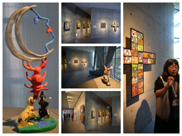 一進門,詢問才知館方有個「可醫可藝」及館藏展,這年頭醫生也來搶藝術這領域,沒想到館展可是世界級的,集合了中外醫師藝術家,一一領略人中之龍藝術造詣的可觀。其中展出者蔡克信醫師代表的心聲最傳神:我的創作一方面是為了表達內心的熱情及感受,透過抽象藝術更能描繪我的心像風景。對於藝術與醫學的關係,認為兩者的概念是互通,以醫師開立處方箋給病患為例,如何針對病患的個人體質,施予適合藥物給該獨特的個體,讓身體回到平衡。醫學與藝術講到最後,都是為了找到平衡,醫學要找到平衡才不會生病,藝術要找到平衡才會有美感。