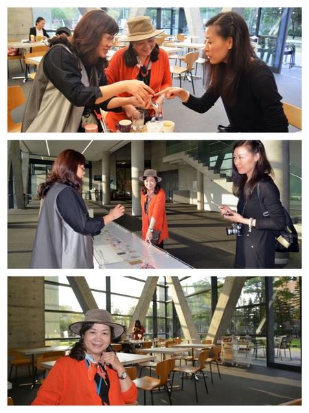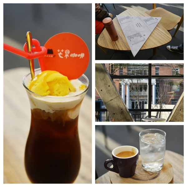 館方準備打烊了,大家嘴乾舌燥,到一樓另一邊書店和咖啡間,餐桌是稍圓形三角,餐墊也是三角型,CIS做得蠻徹底的。咖啡香甜沒話說,我點的芒果冰淇淋咖啡意外好喝,從上層冰淇淋、中層芒果香咖啡、下層純咖啡,層次分明的舒暢帶著溫馨感,今日能在“三娘教子”下,又上了一心靈滿足課。