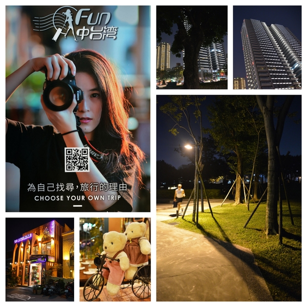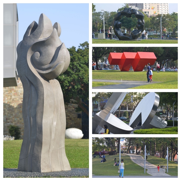 每次到台中,照例要到國立臺灣美術館報到,除了看看展覽,逛逛前院草皮、欣賞雕像不一樣的心境,漫步國內少有的高高低低的地形,建築師巧妙的經營地形的變化,將雕塑散落在不同的定點、不同的高度,當走到不同的位置,每每看到國美館隱藏花木之後不同的角度,又是另外的一個感覺。再就是走到附近美術館街林蔭道兩旁挑個花園情調餐廳用個餐、喝個咖啡,享受滿滿的文藝氣息的生活與休憩。這次由亞洲大學看完現代美術館返回台中,頭一回在晚上散步國美館,在館外廣場,夜景迷人,美術館一列大字及塑像的夜間光景格外顯眼,回頭對面的大樓也映照著月光,路燈灑著的燈光,更營造出另種都市歲月的迷情。