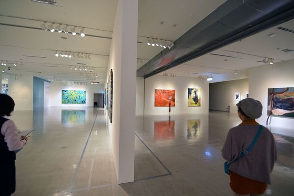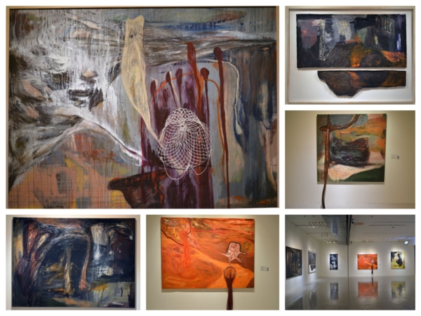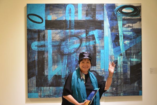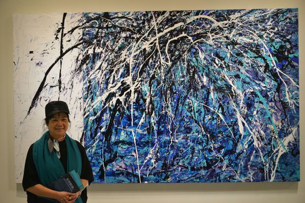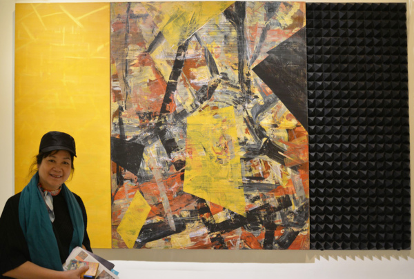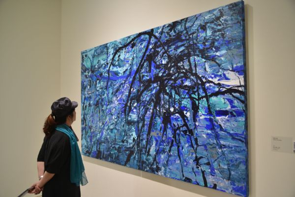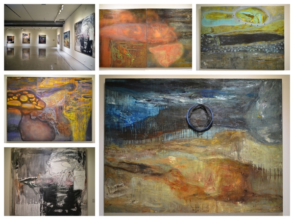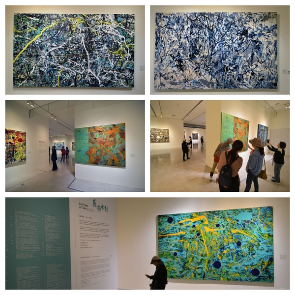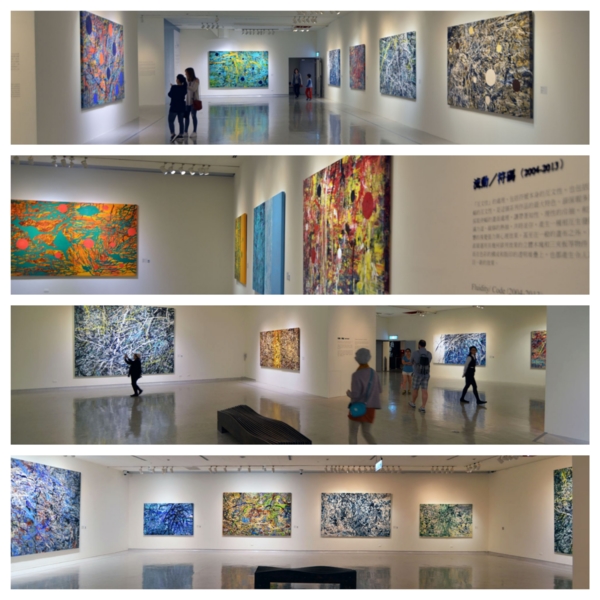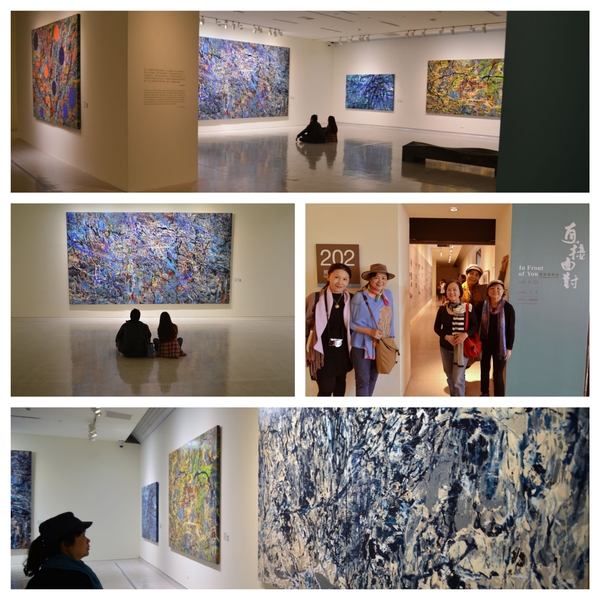 再到2樓,參觀「直接面對:薛保瑕個展」,「這次的主題『直接面對』像極了我的個性:在面對事情時,就是直接面對它。」薛保瑕幽默說著。她面對的不僅限於畫作抽象的概念,更重要的是對於生命各種問題的關心。薛保瑕有師大美術系學士、美國普拉特藝術學院碩士、紐約大學藝術系博士學位,學力驚人,而資歷也顯赫,曾任國家文化藝術基金會執行長、2006年7月起3年的國立台灣美術館館長、國立台南藝術大學視覺學院院長、創立臺灣第一個藝術創作南藝大博士班,能獲得文學或藝術博士,尤其是美國名校的是非常漫長艱苦的學習。這些都不是最重要,當我看著她的個展,展現出她的實力,無論是抽象藝術論述的精闢深入、繪畫藝術的表現力都極為精彩,還有現任國美館館長蕭宗煌透露:原來20年前,薛保瑕就曾排隊申請國美館個展,但還沒等到檔期、就先接館長一職,為求避嫌,乾脆中斷申請,結果一拖再拖、延宕了20年後,終於在年屆60之際圓了夢,「總算還了薛保瑕一個公道」。期間,薛保瑕不斷累積豐沛的創作能量及旺盛的藝術創思,如今,一次釋放,氣勢磅礡中更見投入抽象藝術的獨特思維。這也是作為一個行政領導,一個藝術工作者應有氣節的表現。