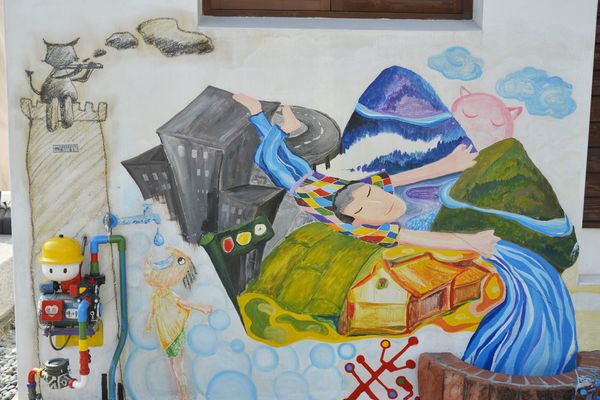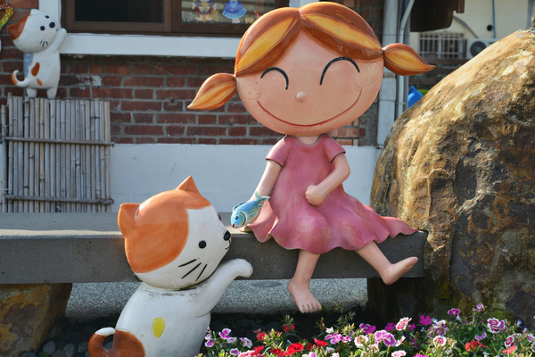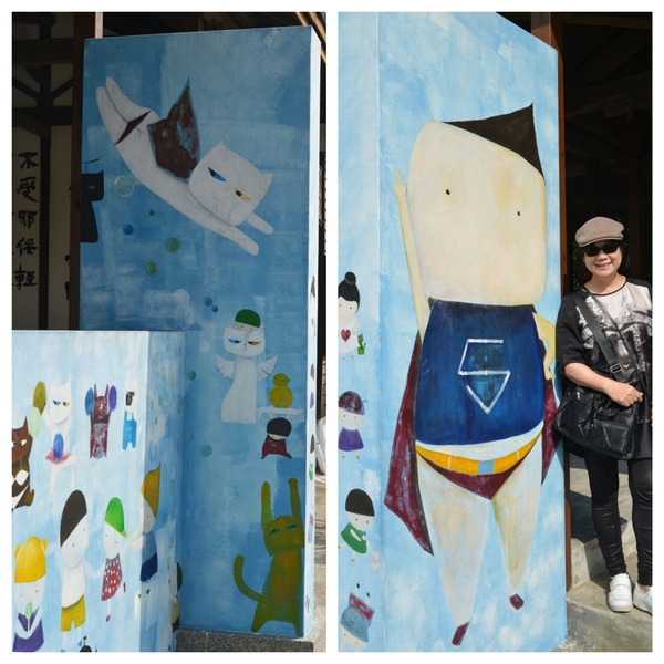 街頭有醒目招牌,一條街,兩旁的日式木造房屋,每一間裡頭,都有藝術家進駐,經過整建的七棟木屋裡,變成藝術家工作室,推展工藝或藝文活動,包含木雕、紙雕、拼布…等。藝術家推廣不易,人潮較少,其實還是老街熱鬧,吃的玩的多,我想藝術是比較高價的,初期要讓藝術家能自立生存,恐怕還要多支持,地方政府及地方企業可能要贊助,否則長期要這些得來不易的地方藝術家經營,並能維持甚至賺一些錢,熱情也得兼顧麵包,保護書法的舞墨天地、體驗彩繪的精緻浪漫、台灣劍獅的活躍威武、古法家具及傳統木工藝等等,先要以維護地方藝術角度,如何造成更能以文創發展吸引觀光客,以文化投資方式,昇華鹿港深層境界,也許各個身懷技藝,運用巧思,促進地方技藝及記憶的繪畫、雕琢玉石、木雕、紙雕、陶藝、獅頭創作、書法等達人能發揚光大,要把他們當寶一樣維護,如果坐視民間藝人因為生意一時較差,無法生存而陸續離開或凋零,或無暇專注傳統藝術及技藝,那是一種損失。