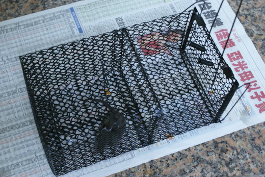 .本來想跟他和平共處的,是你打壞和平的,你可別怨我哩.買了黏鼠板一組與捕鼠籠一個,將晚餐中的蝦仁吊了一個在捕鼠籠裡,隔兩天就捉到了一隻很小隻的老鼠