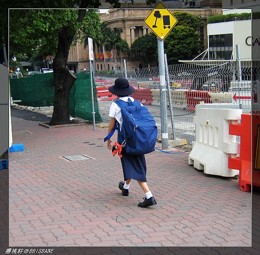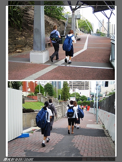 據說,澳洲的學生從十一年級(相當於高二)開始有課業的壓力,不過學習負荷是逐漸加重的。這大書包,看起來很大,但是我並不覺得這些學生背起來很重的樣子。裝的不知是什麼哩?