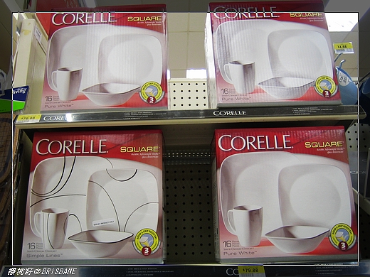 到了布里斯本,看到Woolworths和BIGW這類當地日常超市架上的康寧餐具在當地頗為「平民」的價格,真不可思議啊!怎麼我以為的高級餐具,在澳洲成了超市上的一堆平民用品之一哩?(「也來個康寧餐盤指數」計算一下,對臺灣人真不公平!)