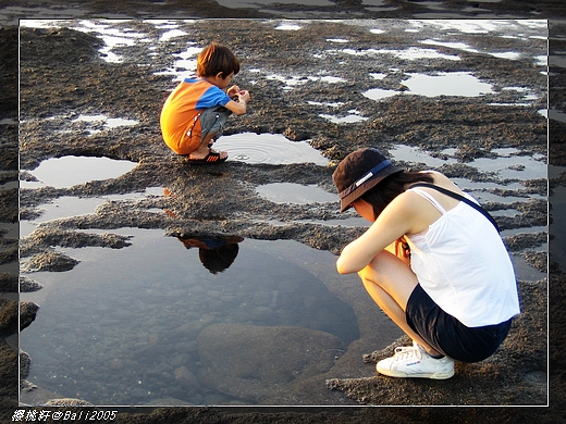 我想,他們應該都在尋找水坑裡來不及隨著海潮退去的小魚蝦蟹蹤跡吧。