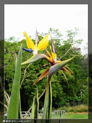 到了天氣比較炎熱的布里斯本後,天堂鳥就像路邊野花一樣,隨處可見,見多了,也就不稀奇,但是這種花形像隻鳥的花朵,搭配著鮮豔的橘色,真是特別。