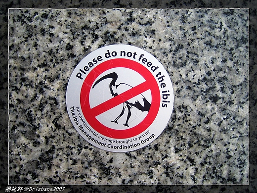 上圖:南岸公園(South Bank)的戶外餐廳的桌面上出現請勿餵食ibis的標示。