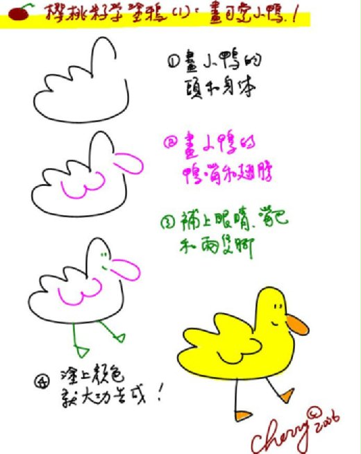 櫻桃籽塗鴉練習1:畫可愛小鴨