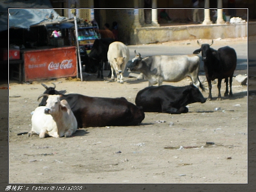 印度牛在印度社會的地位,可不只是有路權、乞權而已,牠們隨地便溺、增產,以致於印度牛滿為患。可是印度政府無力圈養和控制牛隻數字,只得繼續漠視下去。我爸轉述導遊的說法:如果在印度不小心撞死一頭牛,必須被判刑一年八個月,如果撞死一個人,只要做六個月的牢。唉,人命比牛命還低賤。
