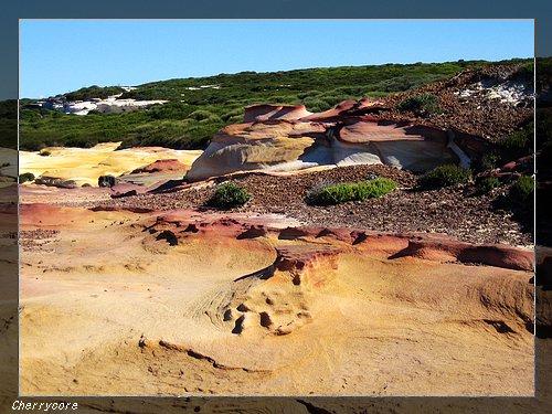 不論經過亂石堆或素淨的沙灘,我們都是快步走過。偶爾看到健行的遊客還爬上岩石堆看海,想來他們不趕時間吧。我們這一趟路程可說是十公里「急征」,因為 Alison 擔心來不及折回 Wattamolla 的 停車處,所以一直趕路。不過 Alison 的擔心最後證明是對的,因為我們 在走完八公里的 Coast Walk 後,又再走一公里多進到 Bundeena 小鎮休憩喝咖啡(我喝了香甜的巧克力奶昔,滋味真難忘懷),此時已下午四點。第一趟快走已經花費將近三小時,如果回程再花三小時,就會走到晚上七點以後,那時太陽都下山了。雖然我們覺得走得快了點,但是其實路上還有好多健行的遊客超越我們,所以我想健行畢竟不是散步,否則這麼一條長步道,可能走一整天還到不了終點,路上可是沒有公廁啊(我並不想在灌木叢裡就地解決),我們也沒人想摸黑走回去,尤其 Alison 的兩個女兒已經舉雙手投降,無論如何不想再走回程了 !