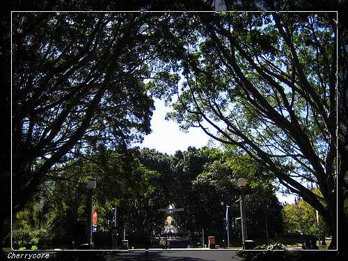 今天,我就從海德公園的中央大道出發,開始我的徒步之旅,遙望左側,天際不時出現的雪梨中心點( Centrepoint )──雪梨塔( A.M.P Tower )不時映入我的眼簾……。這座塔我並沒有花錢上去參觀,我想到處走親近雪梨市區也很不錯。
