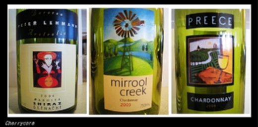 葡萄酒的比賽和品評在澳洲也是一門盛事,除了年度的國內外競賽之外,有一些酒類雜誌也會有類似 TOP100 的推薦(按照推薦每天一瓶,也要喝三個多月),有的瓶身上就會貼有這一類的貼紙,例如「 Winery of winestate magazine THE YEAR 」的字眼。因為酒的種類很多,所以我幾乎都是憑著酒瓶的外觀來「選美」的,例如這支雀屏中選的白酒酒瓶我就很喜歡,她的酒瓶造型與一般酒瓶不太一樣,除了瓶身的標籤很漂亮之外,瓶底像微張的女性裙擺,整支淺墨綠色的瓶身配上綠色的瓶蓋,瓶蓋上印著黑桃(撲克牌黑桃),標籤上面也有黑桃圖樣的壓凸。酒瓶上也有黑桃的壓凸,下半部則是酒廠名字 Peter Lehmann 的壓凸字體。這瓶酒有貼了張「 SYDNEY INTERNATIONAL WINE COMPETITION/ BLUE-GOLD /JUDGED WITH FOOD www.top100wines.com 」的貼紙,原來是 2004 BAROSSA SEMILLON 的競賽酒,瓶子背後的標籤還說明了 Peter Lehmann 酒廠的大致歷史和瓶子的設計者是藝術家 ANELIA PAVLOVA 。這瓶還滿好喝的,十幾元價格很實惠。我很想把空瓶子帶回台灣,不過瓶子很重,我的行李和書籍已經超重了,只好作罷。