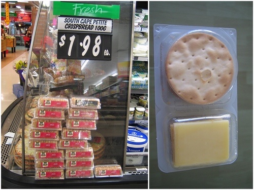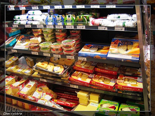 澳洲的乳製品比台灣還便宜,例如鮮奶的濃度高,價格也便宜;還有各種起司、乳酪製品,在超市裡是以一整個大冰櫃陳列的。在柏斯的WoolWorths連鎖大超市裡,乳酪櫃兩側必然會擺著一大堆薄片餅乾,而且這種餅乾還有好幾種口味呢。