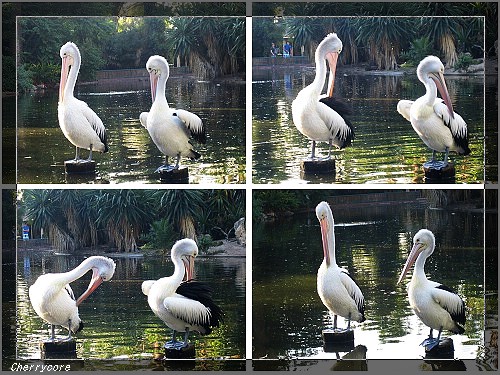 鵜鶘不只生活在海邊,我們曾在距海岸線兩百公里外的水潭看到牠們的踪影,雖然在布利斯班是到處可見到的鳥類,鵜鶘在澳洲也是保育的鳥兒,說到這裏,我心裏有點納悶:到西澳沒有看到天鵝(西澳的LOGO就是天鵝),而鵜鶘到動物園才見到,嘿櫻桃籽,你確定你飛機下對了機場嗎?