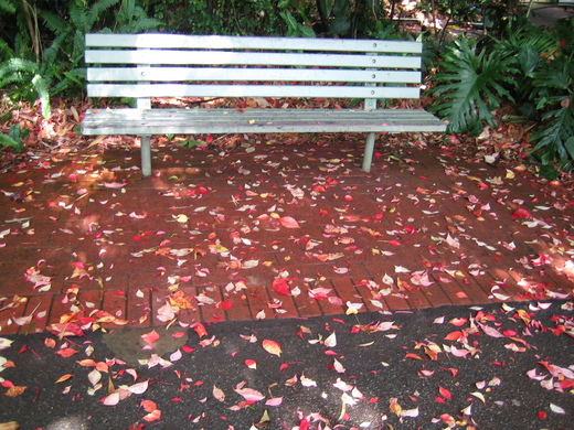 在柏斯動物園裡,一張在幽暗角落理的椅子吸引我的目光。太陽穿越茂密的林蔭灑下一角日光,襯著滿地的繽紛落葉,真美!