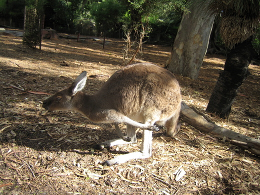 這個柏斯動物園比木柵動物園還小很多,而且到遊客中心買地圖也要錢。這裡的動物們分區域居住,多數不是關在籠子裡,反而是遊客要進出各種柵門到各個區域。不過到澳洲看無尾熊和袋鼠就方便很多,因為都沒有玻璃、柵欄隔著,可以很親近的看,感覺上是以考量「動物」居住環境為主的動物園。看袋鼠可以讓人親近,而無尾熊是天地為帳,直接住在油加利樹上,不知道晚上他們會爬下來嗎?