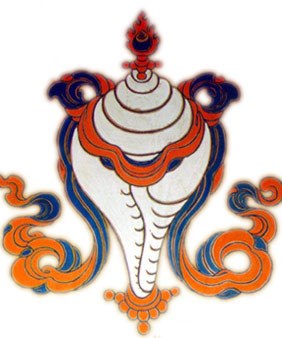 在西藏,以右旋白海螺最受尊崇,被視為名聲遠揚三千世界之象徵,也象徵著達摩回蕩不息的聲音。