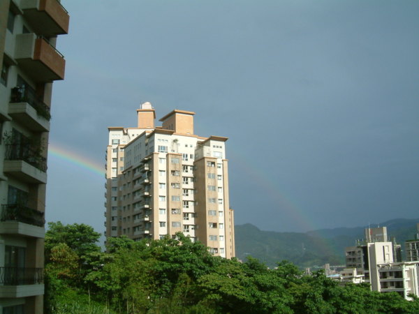 C棟大樓-我們社區由六棟大樓環繞,從我家(A棟)落地窗看另一棟(C棟),正好有一道彩虹。