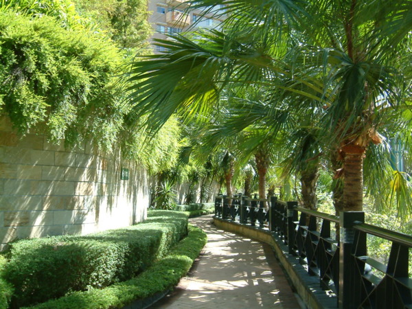 社區內環步道-社區有內、外環步道,外環步道與仙跡岩自然相通,內環步道種植許多熱帶植物,宛如villa;另有風雨走廊的內環步道,提供雨天散步。
