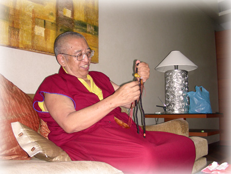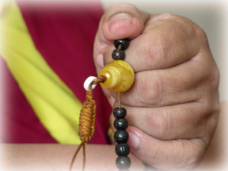 幾個月前,我跟仁波切的侍者--洛桑喇嘛--年輕、盡責、就像仁波切孩子一般的喇嘛談話時,聊起了念珠,因為我有一串念珠要重穿,請他給些建議。