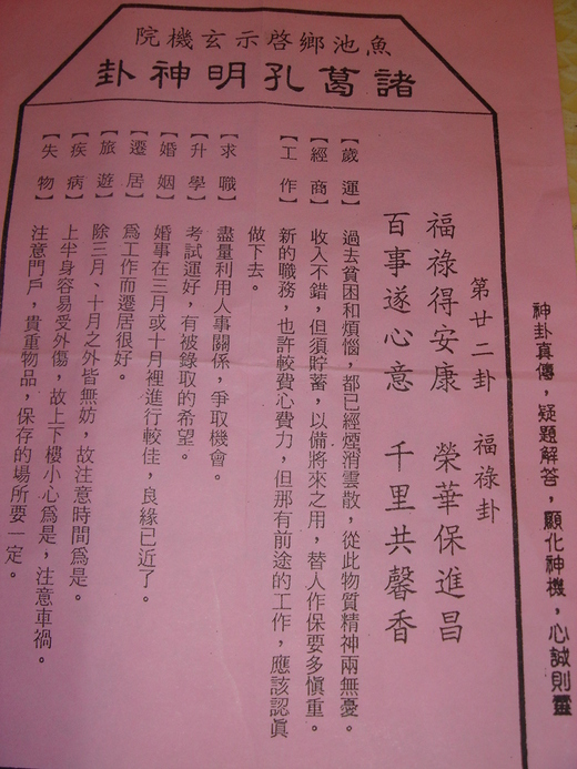 抽到一張籤詩~