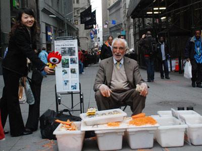 華爾街紐交所門前賣蔬菜削皮器的老頭