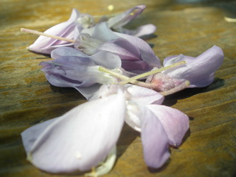 圖說:吹落一地的紫藤花瓣,讓人憐惜。