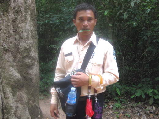 在吳哥窟參觀,常看到和他一樣穿著長袖制服,胸前掛著名牌的人,他們都是通過考試,領有執照的柬埔寨導遊。每天他們帶著從世界各地如潮水湧來的觀光客,參觀大大小小的廟宇廢墟,講解柬埔寨可悲可嘆的歷史。小邱來吳哥窟不下五百次,在炎熱的天氣下,每天工作八小時,賺取區區25美元,但這是令當地人羨慕的收入。