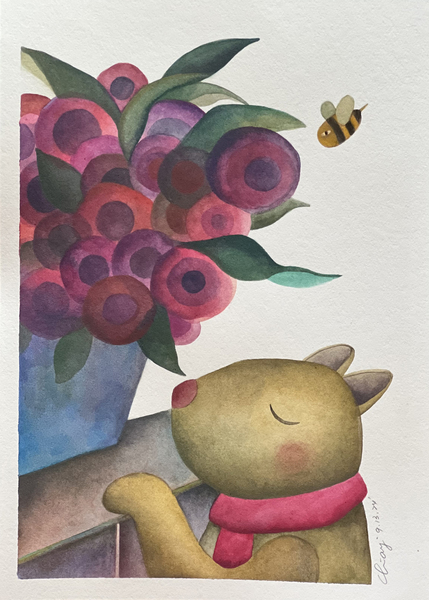 曾是設計企畫文案,現以創作引導與世界對話。 不曾在臉上駐足的顏色,全跑進了她的畫裡恣意舞動。 在神祕的想像世界裡,混入夢境般的魔幻色彩,佐以慢火烘焙的文字, 讓滿載療癒能量的創作,能溫柔撫慰不安的靈魂。