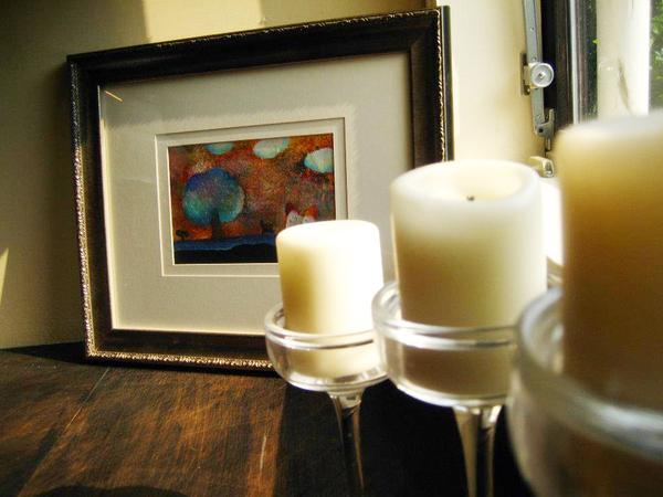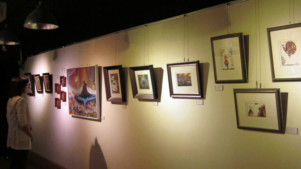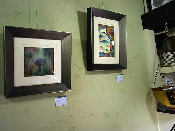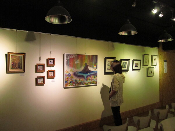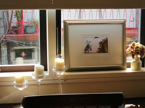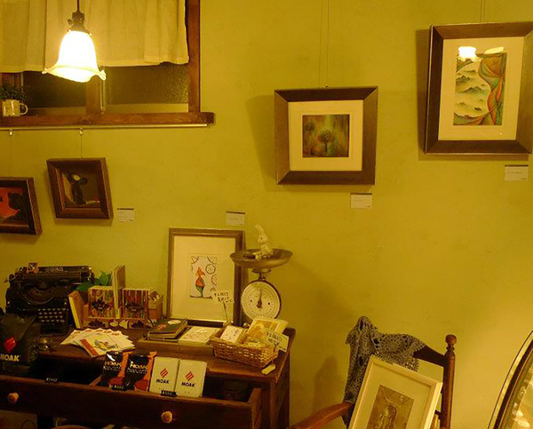 所有的作品安放在咖啡店中的各個角落裡,在不同光線投射下,畫作紛紛上場演繹各自獨特的魅力,午後陽光照映入窗邊的畫作,斑駁的光影為畫作妝點出舞台效果~
