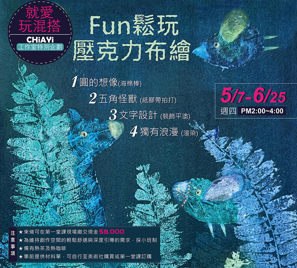 【5月。週四下午‧工作室夏季特別課程】 初夏將至, 工作室即將上場的是『就愛玩混搭』系列課程, 將學生敲碗希望的元素與生活相結合, 讓自由的『壓克力』與手作的『布藝』混搭, 共同演繹獨屬自我的手作創意...