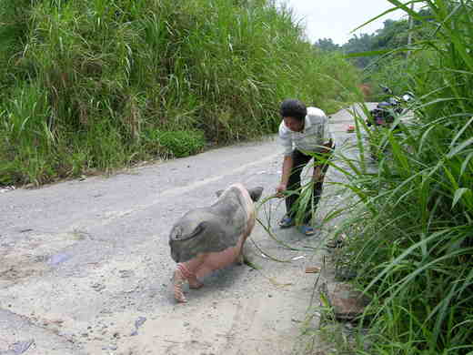 盧山橋時,看到這頭麝香豬緩緩的過橋,原本以為是流浪狗,近看嚇