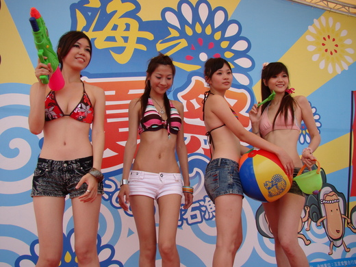 人碼頭的蚵殼屋前舉行,主辦單位邀請身穿比基尼及短熱褲的SHOW