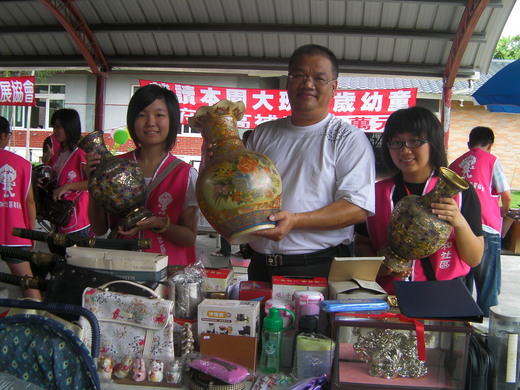「二手尋寶、愛心助老」,嘉義縣環保局該上週六在朴子市春秋武廟,舉行環保公益跳蚤市場,各地愛心人士、機關團體,捐贈琳瑯滿目生活用品,朴子市文化里長楊石旭,捐出珍藏銅器花瓶、紀念刀,以行動做愛心,民眾熱烈響應,義賣所得7000多元,捐助華山及創世基金會。