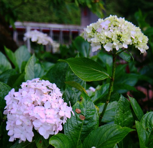 繡球花朵盛開,也是「嬌」點。繡球花沒有雄蕊和雌蕊,稱為「假性