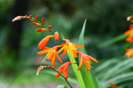 遊樂區的洋繡球花季來臨,像黃色鳥兒在綠葉跳舞的射干菖蒲也處處