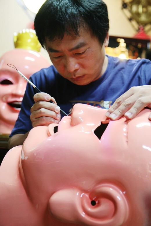 【記者林宜樟/嘉義市報導】高雄世運大出風頭的電音三太子戴著逗趣的神偶和華麗的戰甲跳舞,讓台灣宗教文化展現在全世界。這些三太子偶頭和戰甲的設計者,不是大公司,竟是在嘉義市路旁一家小小的新藝成神將工作室,師傅吳春星第一次曝光,原本低調的他說「要讓大家知道設計者是誰!」