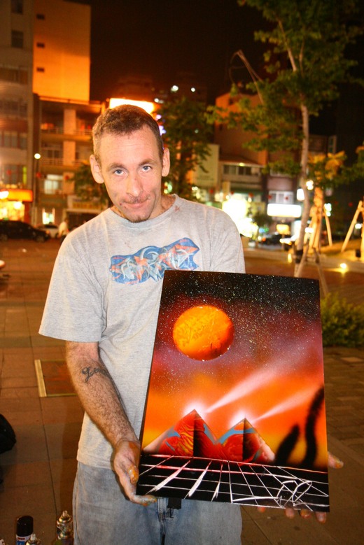 Roland行跡遍及全台,一開始他在台北街頭創作賣畫,但曾有穿著昂