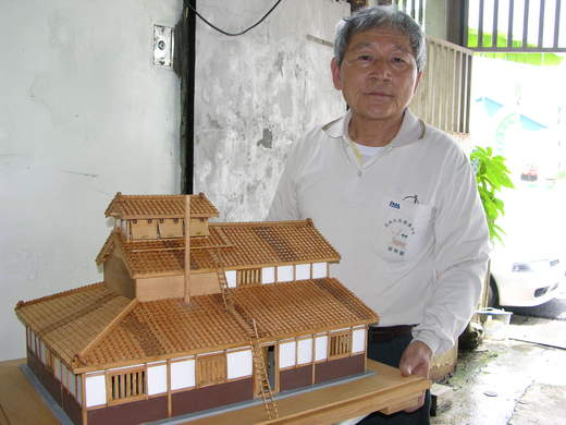 ,這幾年他都以精準的比例和工法,用檜木建造縮小2、30倍的三合