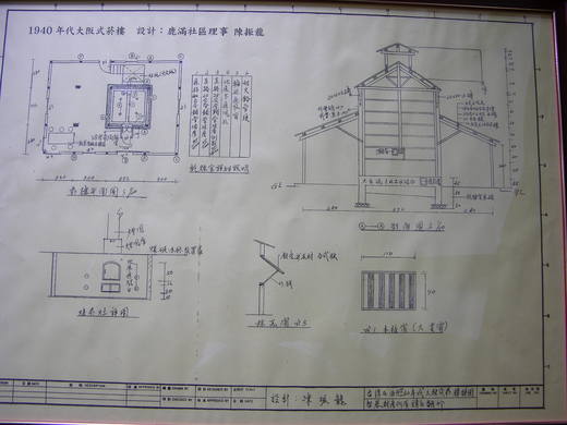 圖三:陳振龍繪製的第一代大阪式菸樓的三張建築圖之一。