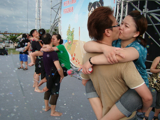 ,主辦單位最後以接吻時間的長短,選出前4名再贈送獎品。第1名的