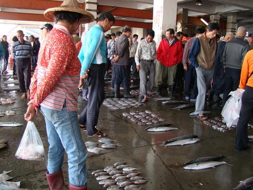 人到魚市場監督,凡在魚市場交易的魚貨,都必須透過承銷人買賣,