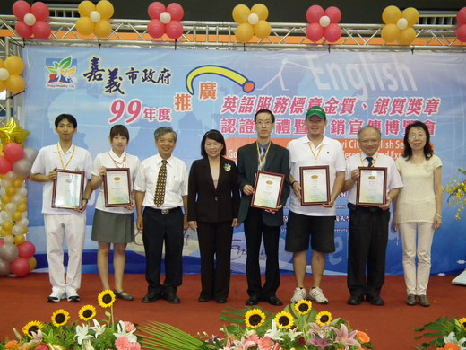 市府企劃處長簡子濤指出,嘉義市拿到金銀質英語服務標
