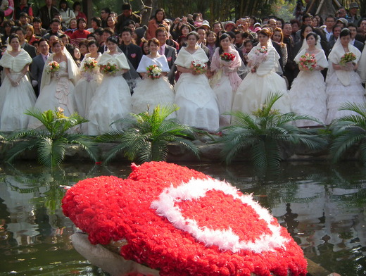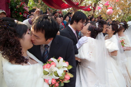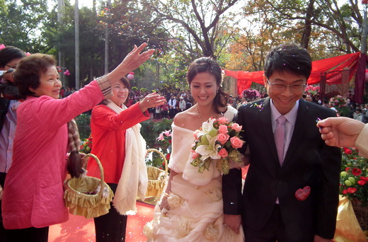 嘉義公園小西湖畔1月1日喜氣洋洋,70對新人在民國100年第1天完成
