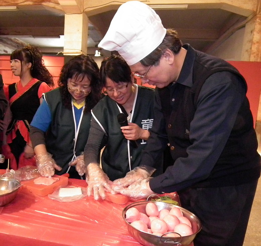 眾透過親手做紅龜粿的樂趣,回味阿公的古早味,分別為