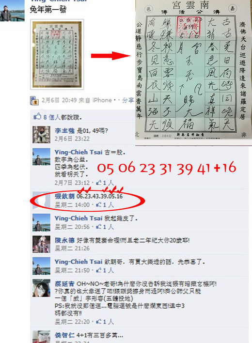 號碼,當天晚上大樂透開獎後,竟然和中午自己無意間在臉書上的猜